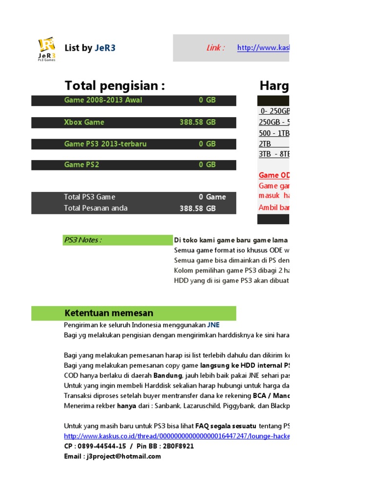 List Ps3 Xbox Game Jer3 Last Updated Februari 2014