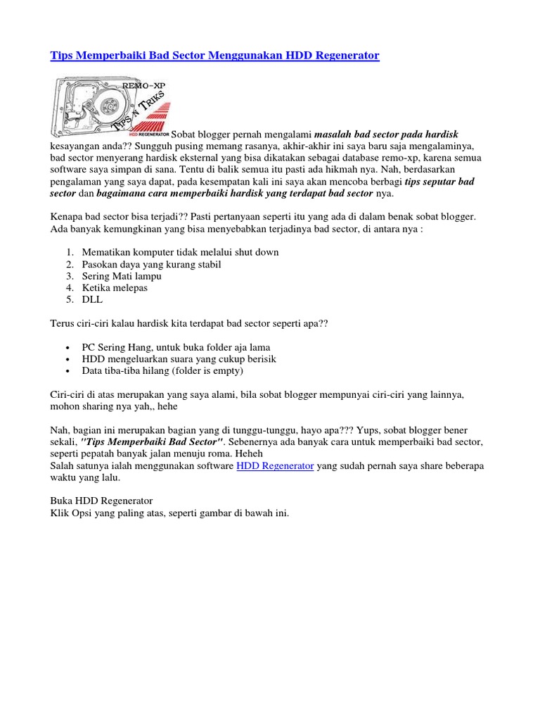 Tips Memperbaiki Bad Sector Menggunakan Hdd Regenerator Docx