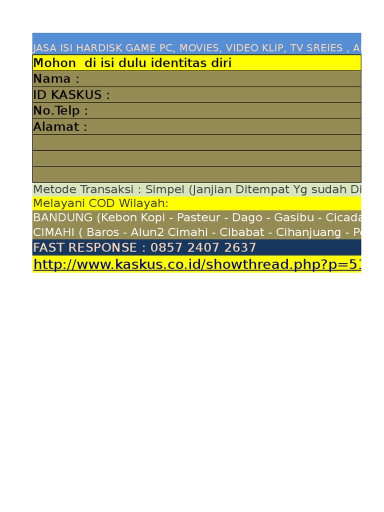 Super Murah Jasa Isi Hardisk Pc Game Film Hd Cod Bogor Bisa