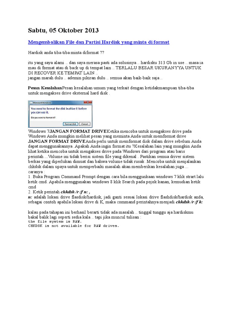 Help Format Hardisk Raw Sistem To Ntfs Kaskus