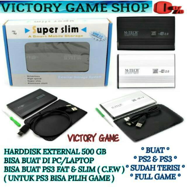 Hdd Harddisk External 500 Gb Pc Laptop Ps3 Cfw Multiman Full