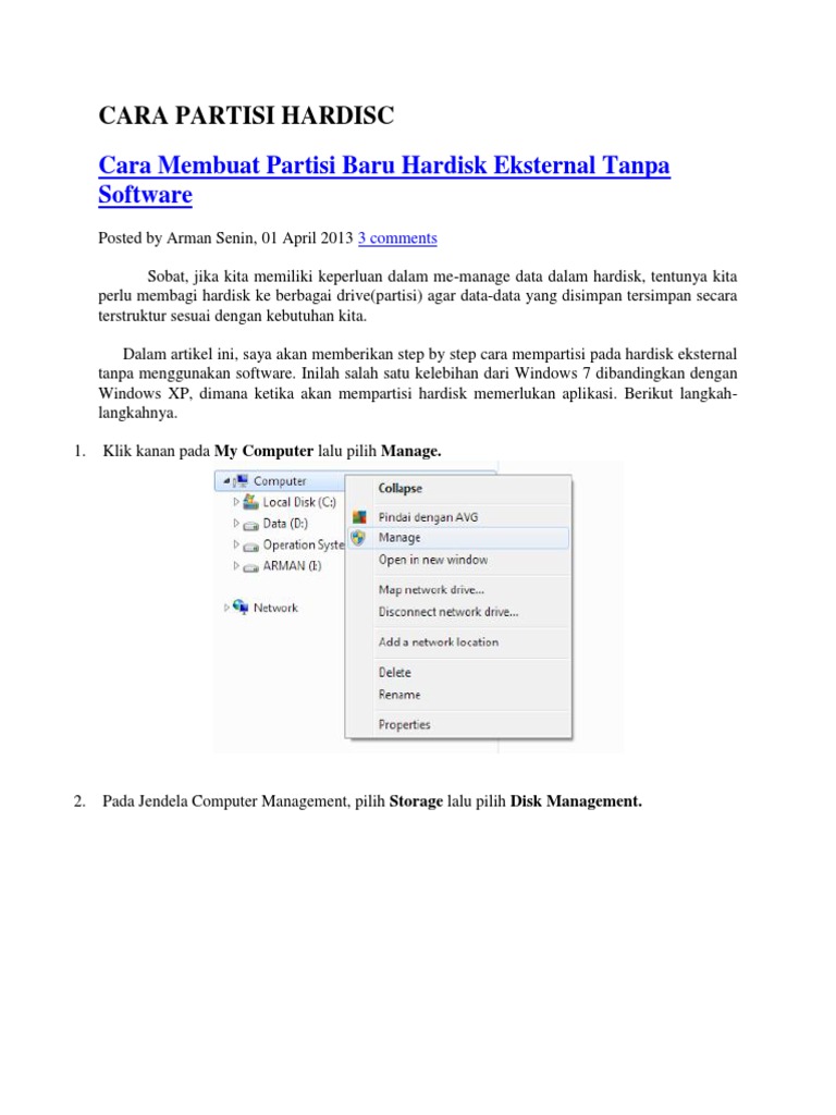 Mempartisi Hardisk Eksternal Tanpa Menggunakan Software Pdf